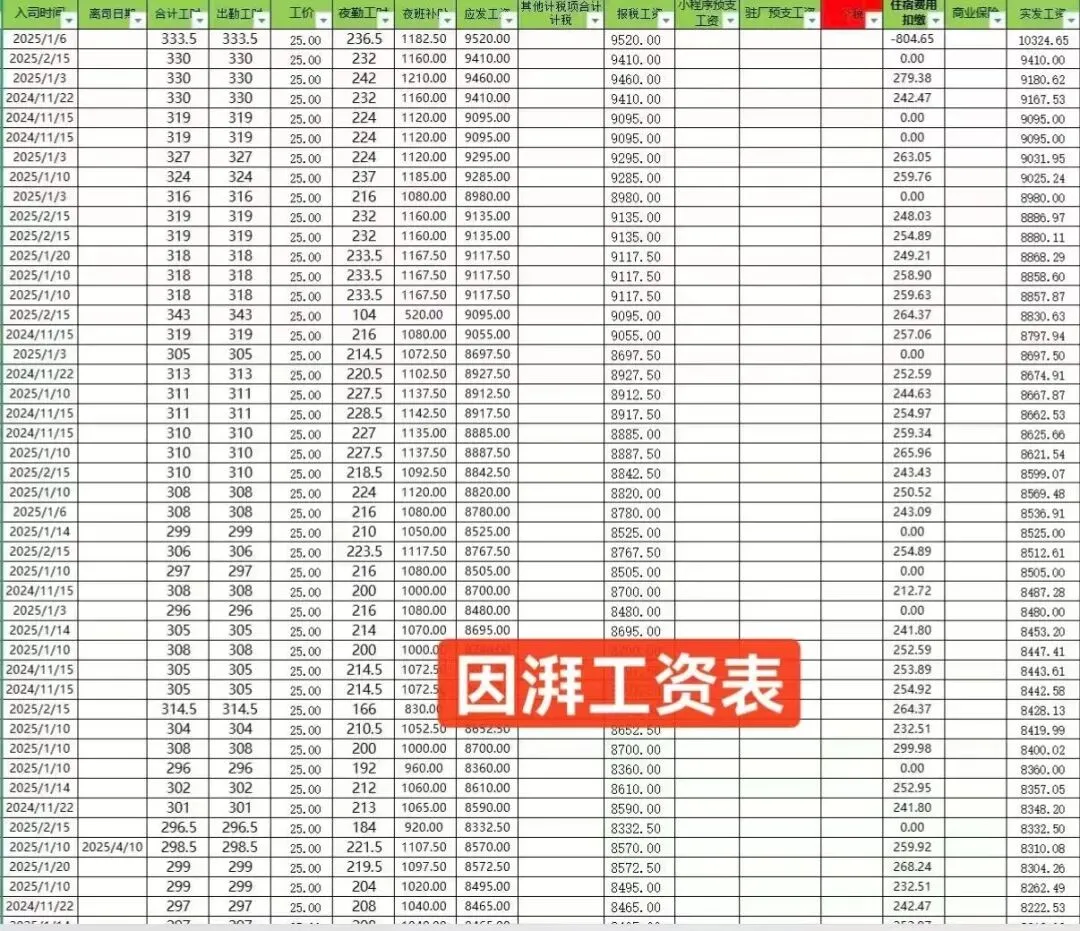 纯工价:25元/小时+两班倒+夜班补贴20~40元/晚=约29元/小时