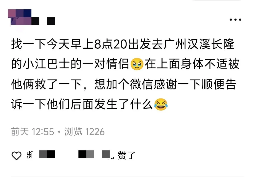 找前天去广州巴士上的一对情侣