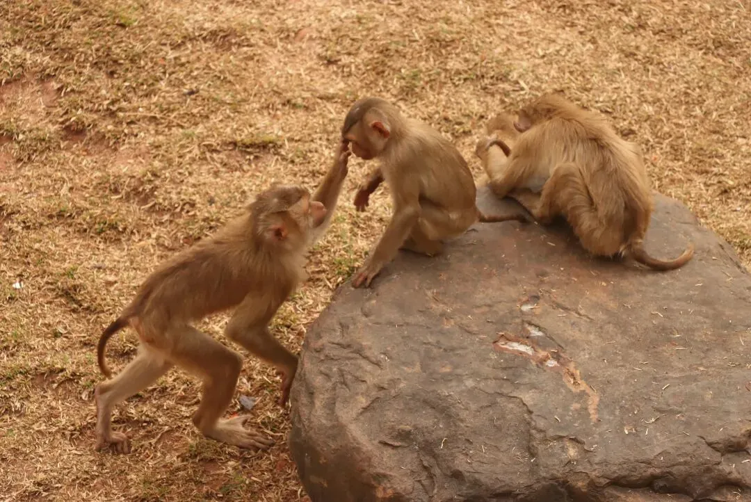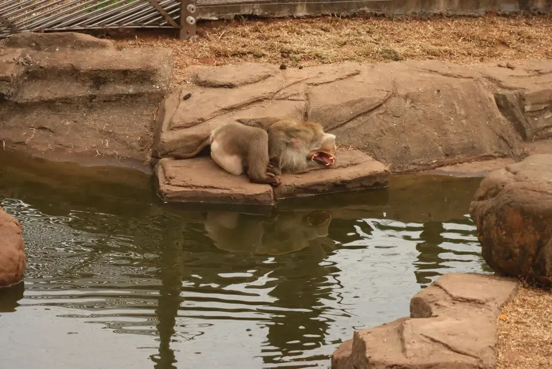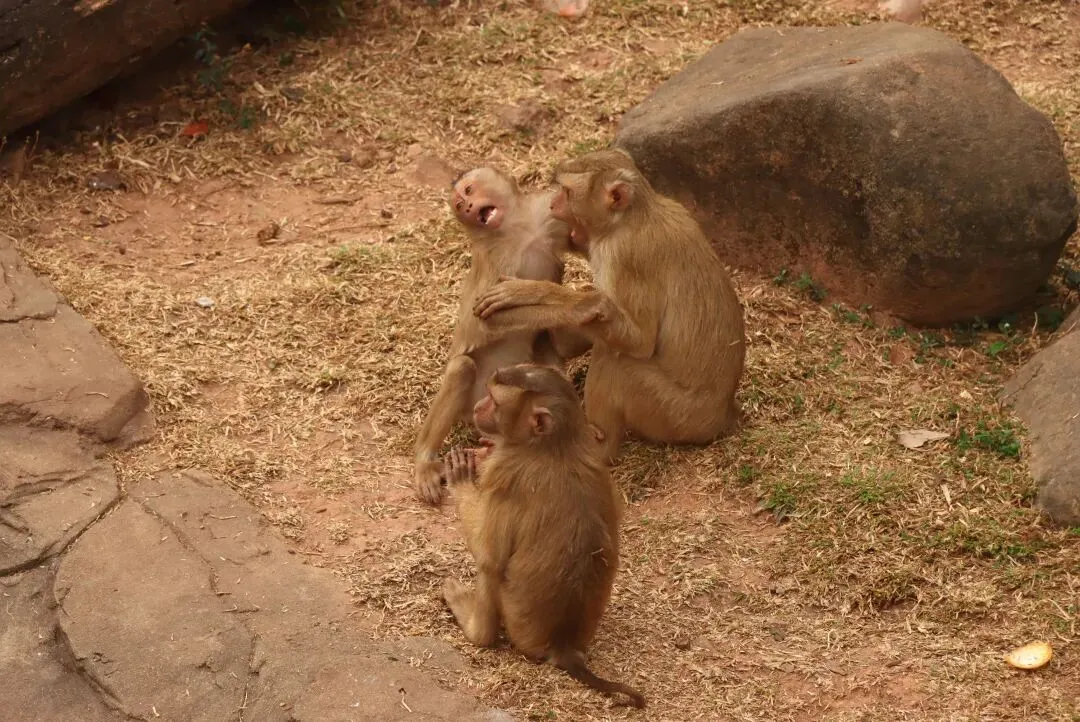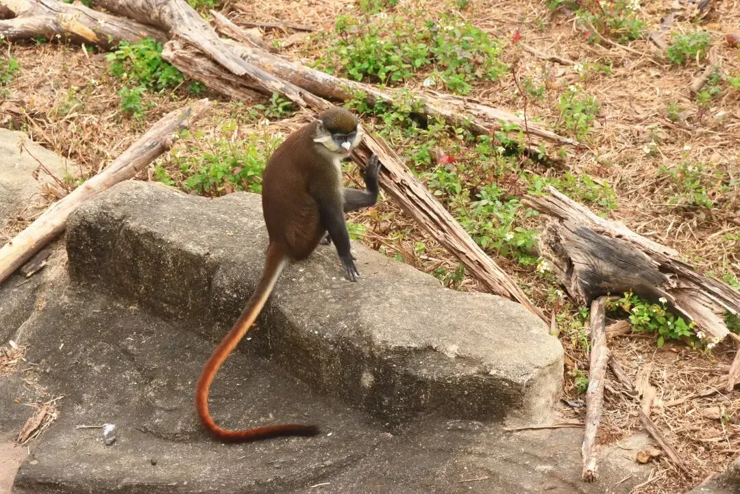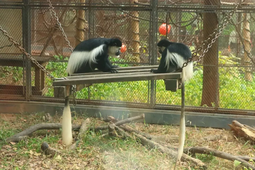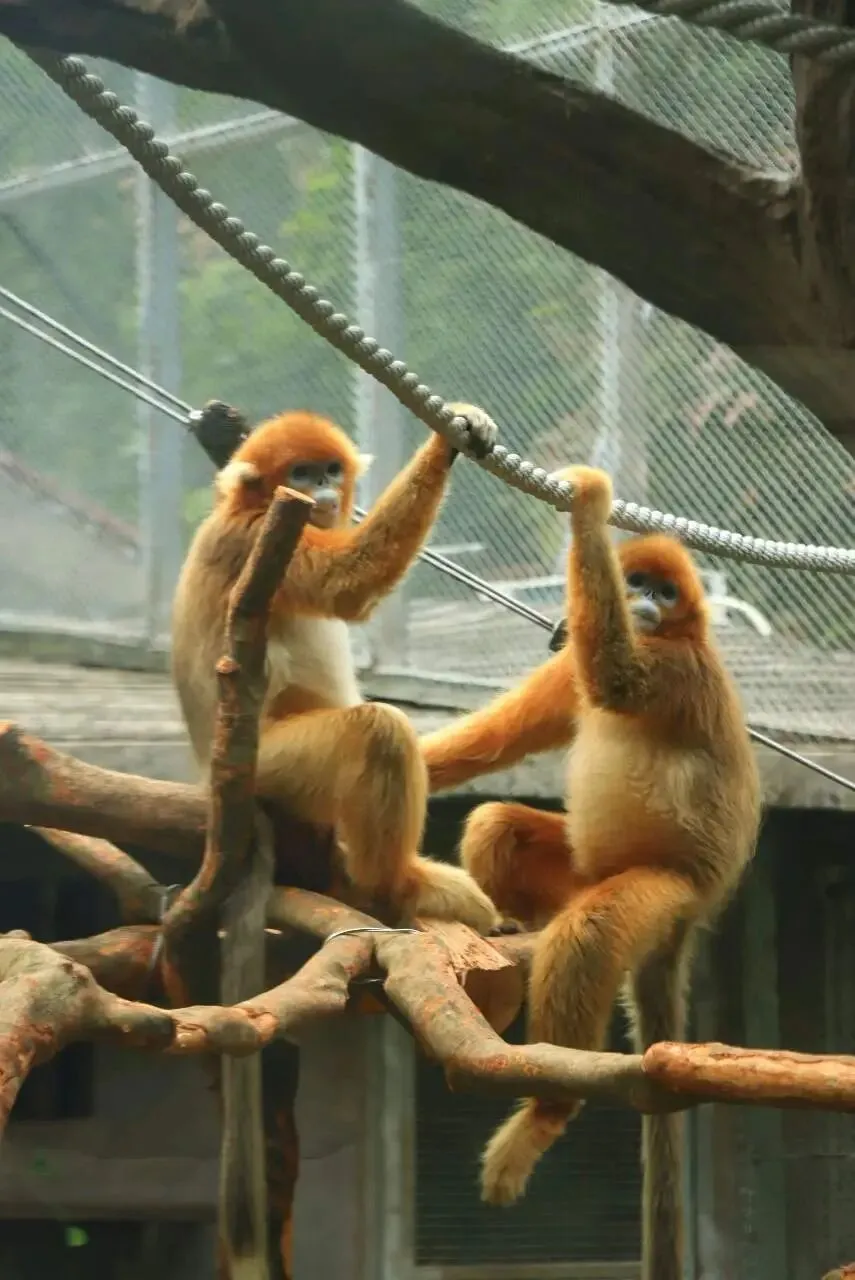刚入园就被猴山的喧闹拿捏,一群泼猴上蹿下跳,有的挂在藤蔓上荡秋千,有的蹲在假山上打闹玩耍,还有胆大的凑到围栏边,瞪着圆溜溜的眼睛打量来往人群,那机灵劲儿,惹得围观者笑声不断。隔壁的长臂猿更显悠闲,攀在高高的树枝上,偶尔甩动长臂划出优美弧线,姿态轻盈得像个杂技演员,安静时又歪着头发呆,仿佛在思考“猴生”。