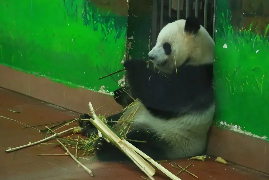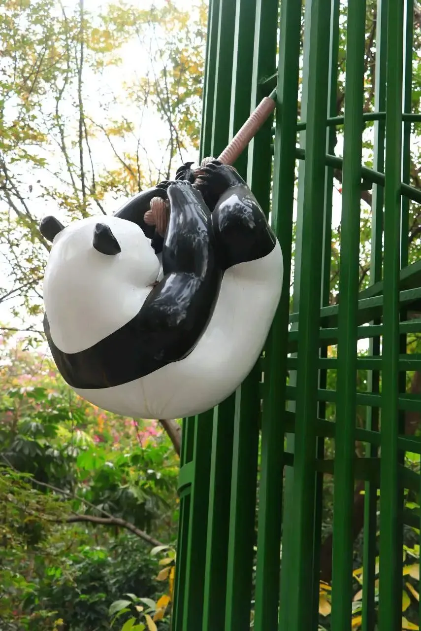 往深处走,熊猫馆永远是人气王。圆滚滚的国宝揣着竹子啃得津津有味,耳朵耷拉着,肚皮贴在地上,连咀嚼都透着一股慢悠悠的惬意,偶尔抬眼扫过人群,那一脸懵懂的模样,瞬间俘获所有人的心,纷纷拿起手机拍照记录,没人能拒绝一只认真干饭的熊猫。