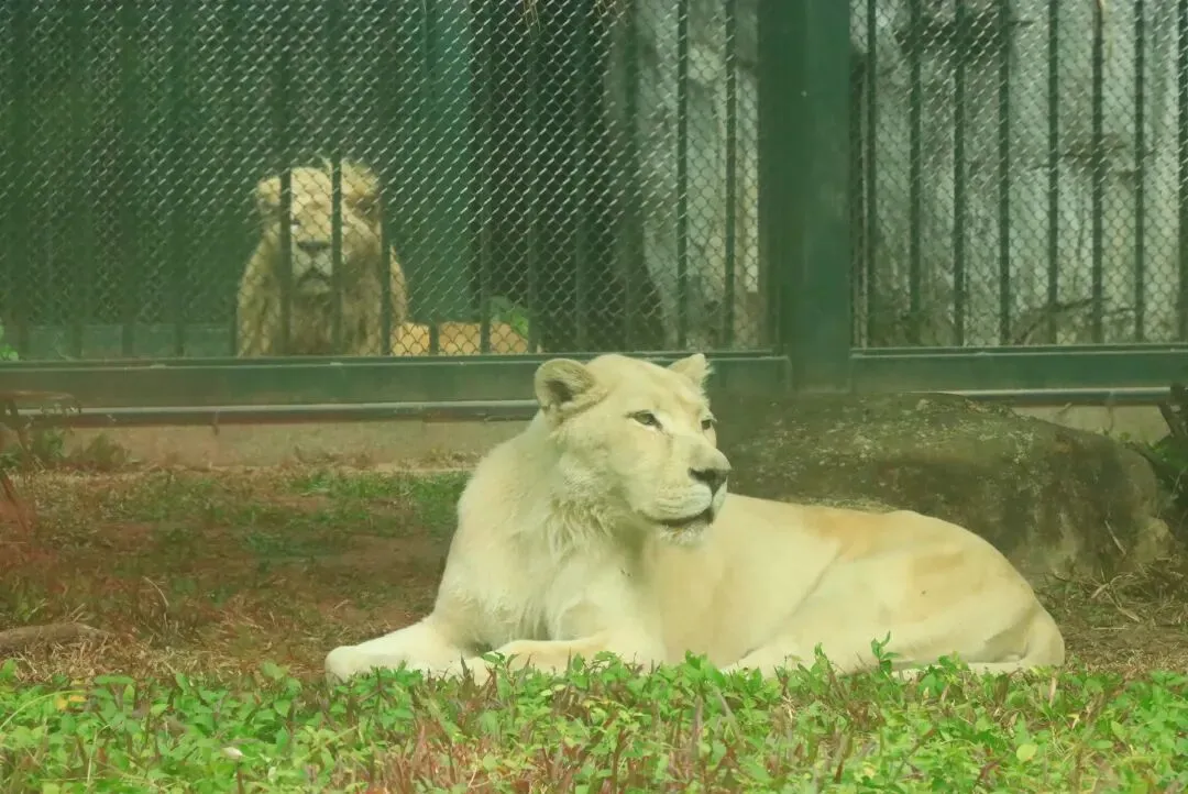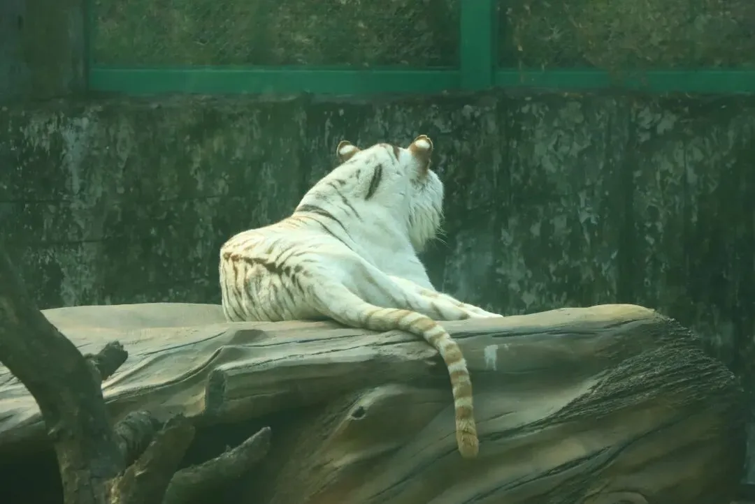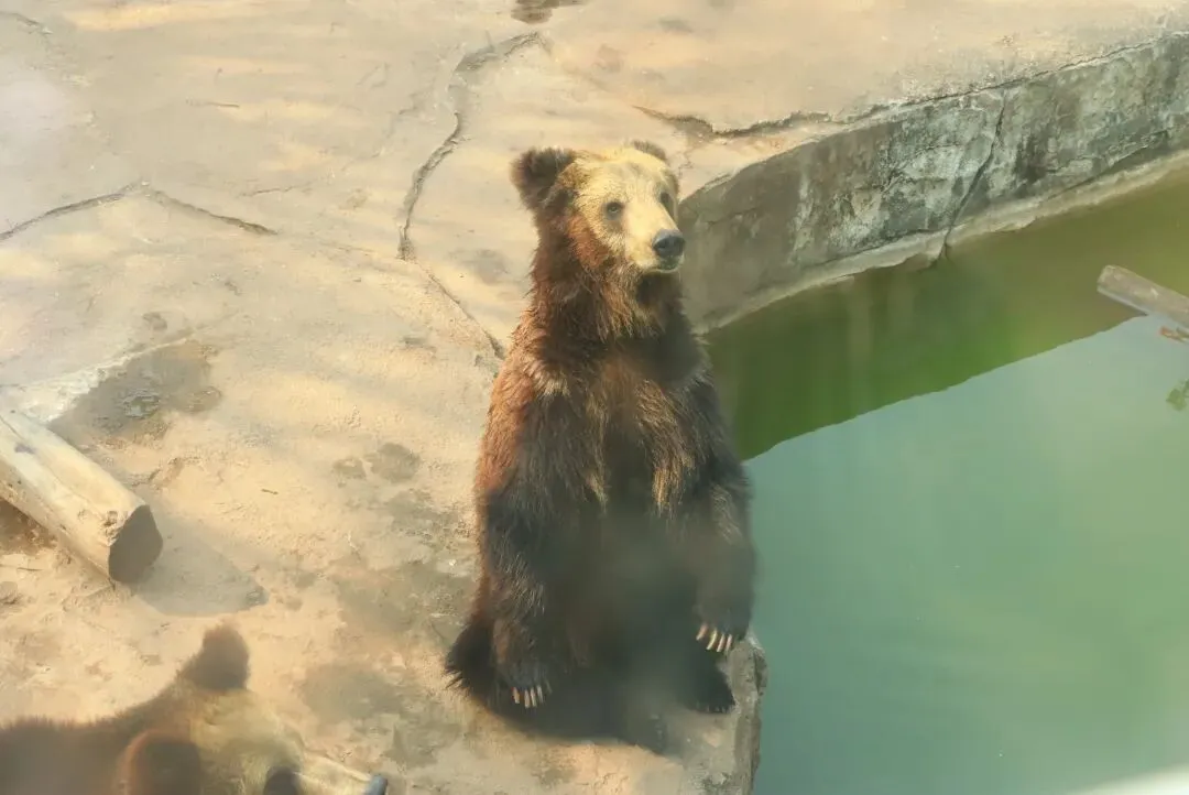 猛兽区的画风则截然不同,狮子懒洋洋地趴在阳光下打盹,鬃毛在光影里泛着光泽,即便闭目养神,依旧透着王者的威严;老虎踱步时步伐沉稳,眼神锐利,偶尔发出一声低沉的嘶吼,震得人心头一颤;黑熊倒是活泼,一会儿扒着围栏张望,一会儿在水池里扑腾,憨态可掬。