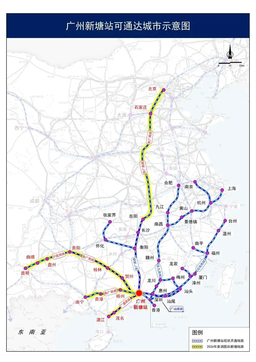 新增广州新塘站与北京西站