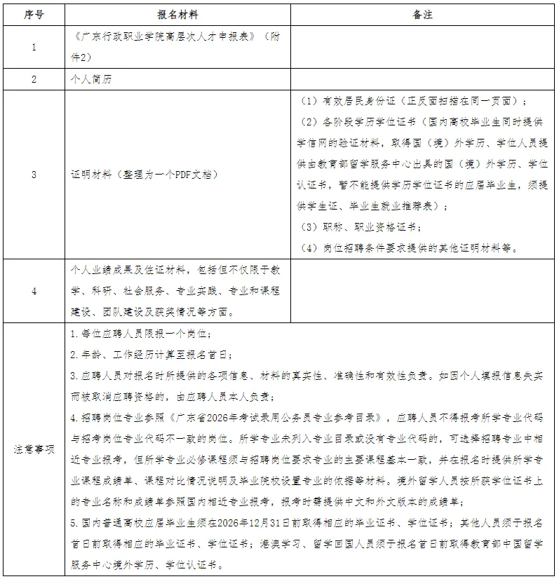 附件:广东行政职业学院2026年高层次人才引进招聘附件合集