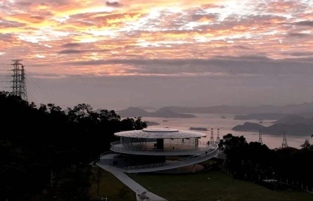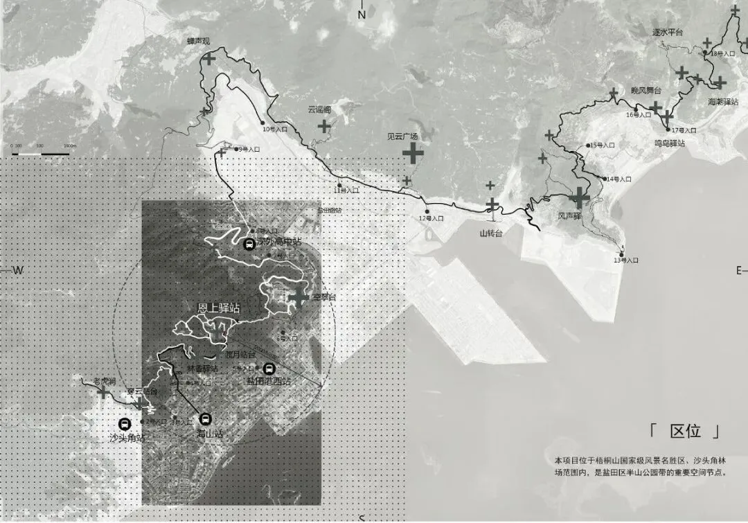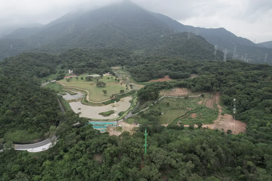 第一次选址这种“偏安一隅”,藏匿于自然的思路在业主决策时遇到了巨大助力,核心当然还是业主希望在驿站能更直接看见山海的风景。于是我们便有了第二轮设计选址:在梧桐山、恩上公园与海景轴线上,选一个场地,在这里360°都能看见风景。