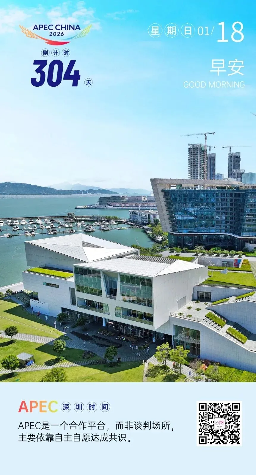 2026年亚太经合组织(APEC)领导人非正式会议,将于11月18日至19日在深圳举行,各方亚太伙伴将相约深圳,谱写更加精彩的亚太合作新篇章。龙岗融媒特别推出《APEC深圳时间》专栏,通过一张张精美倒计时海报,与你一同见证APEC盛会的到来!