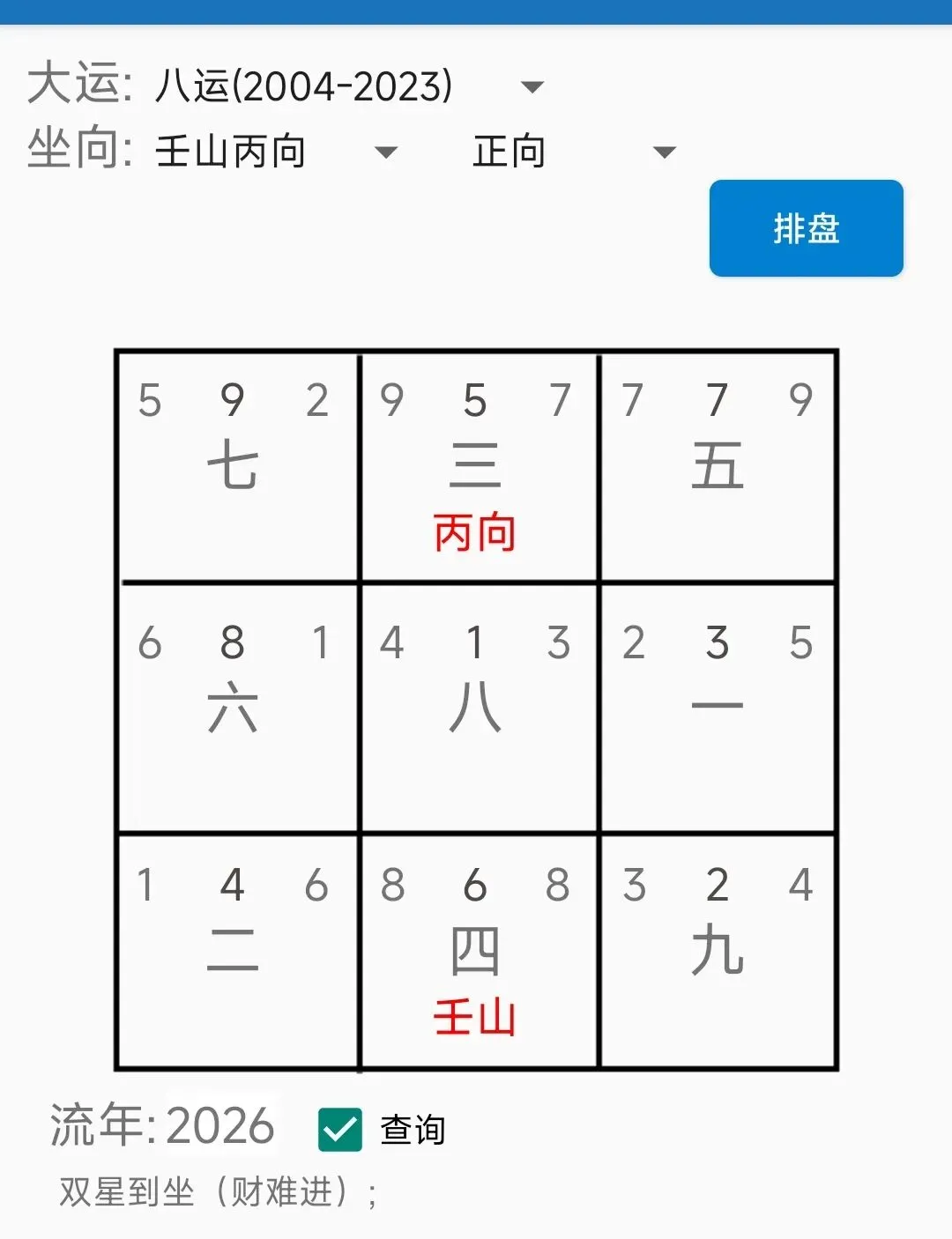2026年属于九运的第三年,2026年的流年飞星飞泊如下图: