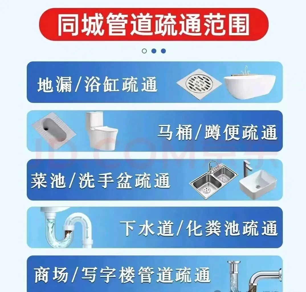 【距您500米】同城24小时上门疏通下水道,专业管道疏通师傅【10分钟上门】提供24小时全天疏通下水道、管道疏通、马桶疏通等同城上门服务,师傅24小时接单,10分钟快速上门。服务范围包括:疏通地漏、抽化粪池、维修水管、安装下水道水管、高压清洗管道等。全城区全天候师傅上门,上门快、经验足、价格透明。管道疏通:使用家用疏通机、大型疏通机等设备,专业疏通各类疑难下水道、卫生间、地漏、浴缸、菜池、阴沟、马桶、蹲坑等