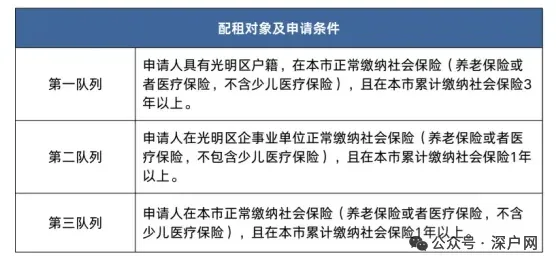 第一队列(优先):光明户籍 + 满3年社保,可优先选择三房户型,中签几率最高。