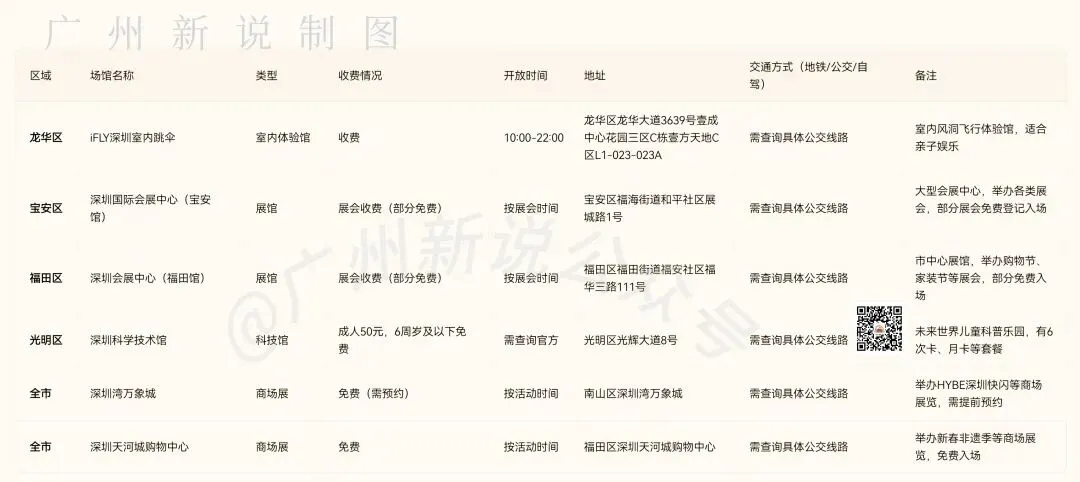 广州番禺、海珠、天河、南沙、黄埔等区,以及深圳各区,都有不少适合室内遛娃、看展的场馆和商场展,既有免费也有收费项目。