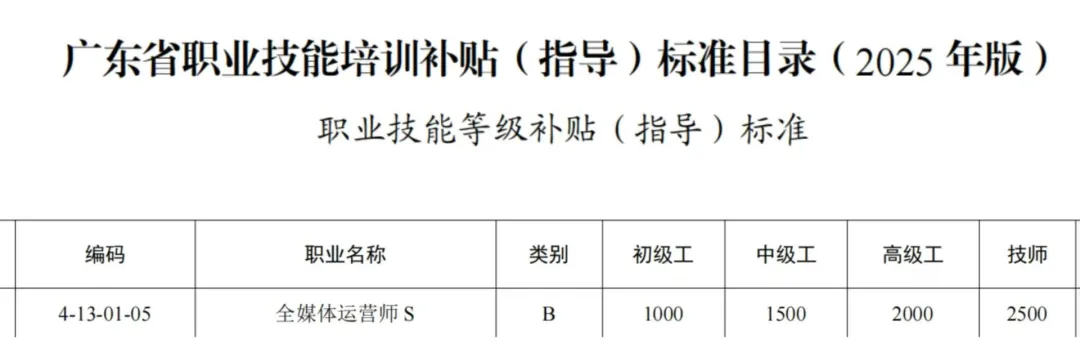全媒体运营师在广州、佛山市等部分地区为紧缺工种,高级工按相关补贴标准上浮30%。即:考过符合条件即可申请官方最高2600元补贴!