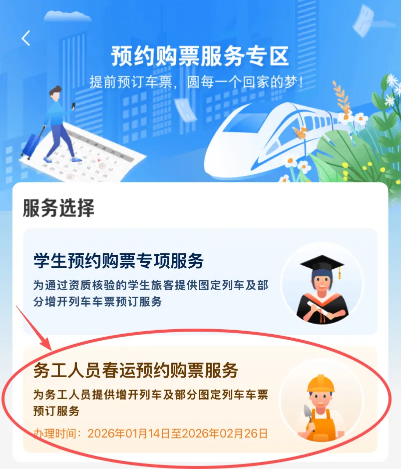 1月18日至1月30日,每日8:00-12:00、14:00-17:30期间,珠三角地区用工规模不少于300人的务工企业可于开车前20天到广州、深圳、东莞、惠州、珠海5个车站的专项办理窗口,现场办理同一日期、车次、方向、席别(硬座、软座、硬卧、二等座、二等卧)300人及以上的包车厢、包列团体订票业务。