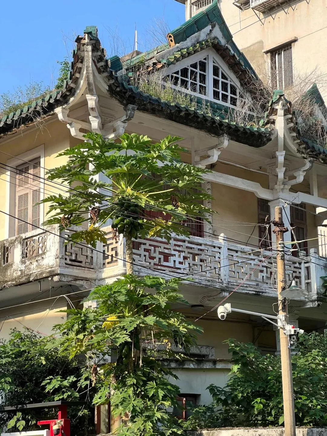 竹筒屋隔壁是多宝南横40号,临水而建的三层高西式洋房,这里是香港乐坛“殿堂级”人物顾嘉辉旧居。顾嘉辉的曲,黄霑的词,罗文的唱,这三位承揽了香港乐坛的巅峰辉煌。