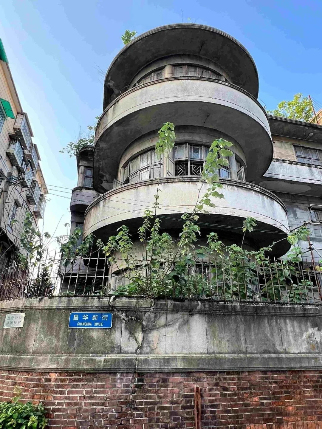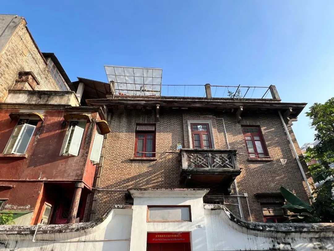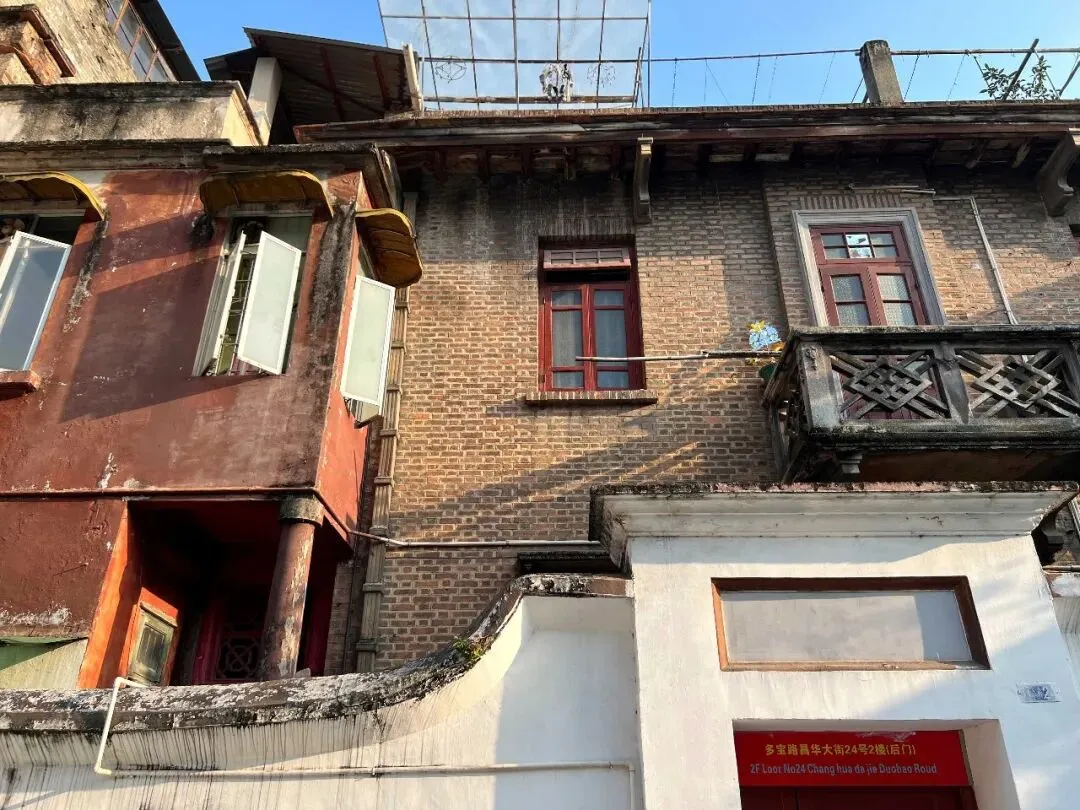 与昌华横街10号平行的是昌华大街24号,这是另一种风格的建筑,红色砖墙带着细腻舒适的质感,外挑阳台上的纹样装饰显示出中西合璧的特色。