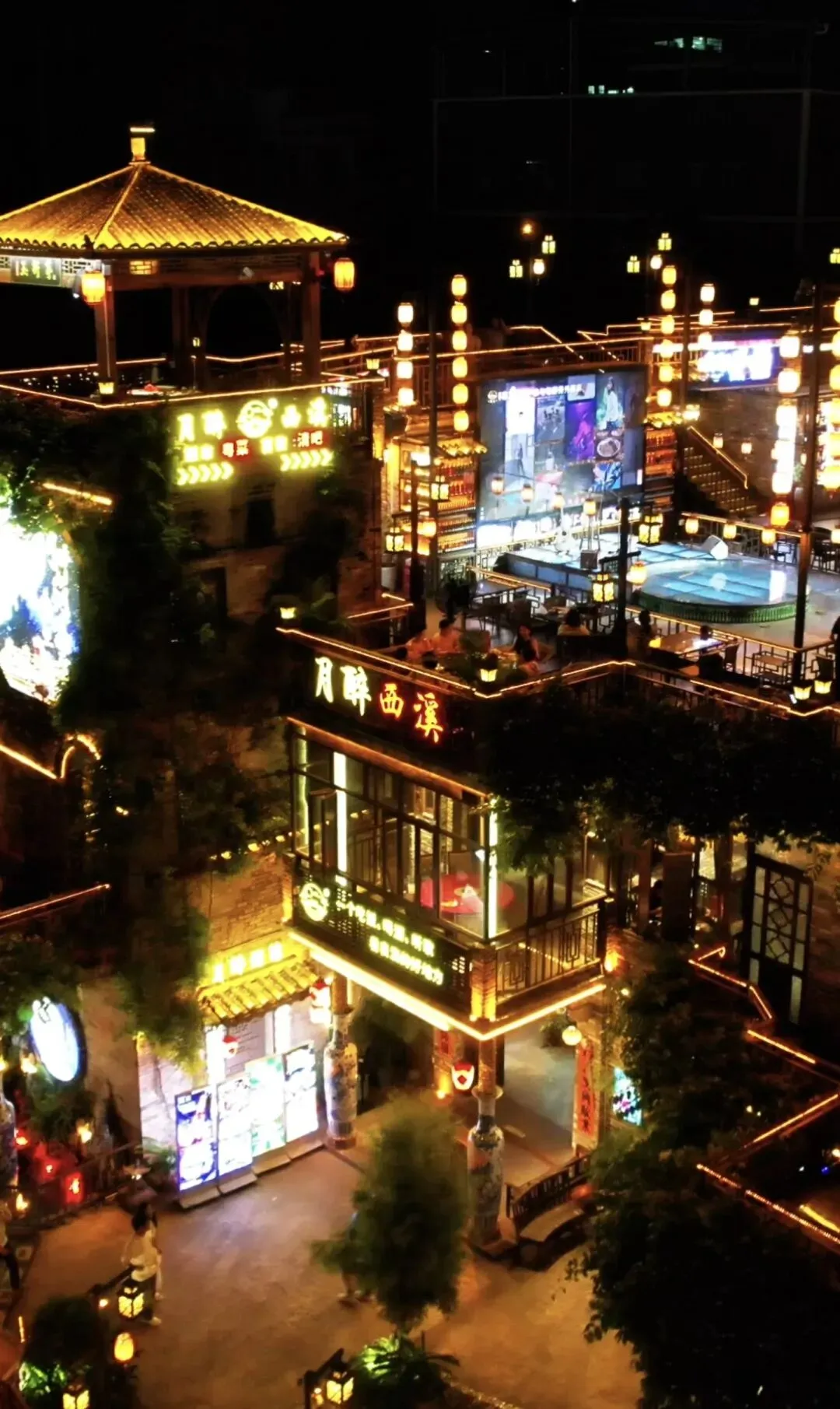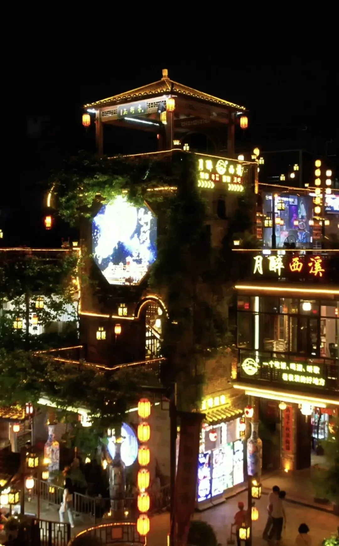 古巷里藏着最惬意的烟火气。提灯穿行的汉服少女与霓虹旋转木马相映成趣,姻缘树上的心愿牌在灯光下闪着微光,3D灯光投影秀与古筝演奏在古戏台轮番上演。巷弄深处,手作工坊的暖光透出窗棂,糖不甩的甜香混着沉香的淡雅,还有河畔船餐厅的夜宴正伴着水声开席。