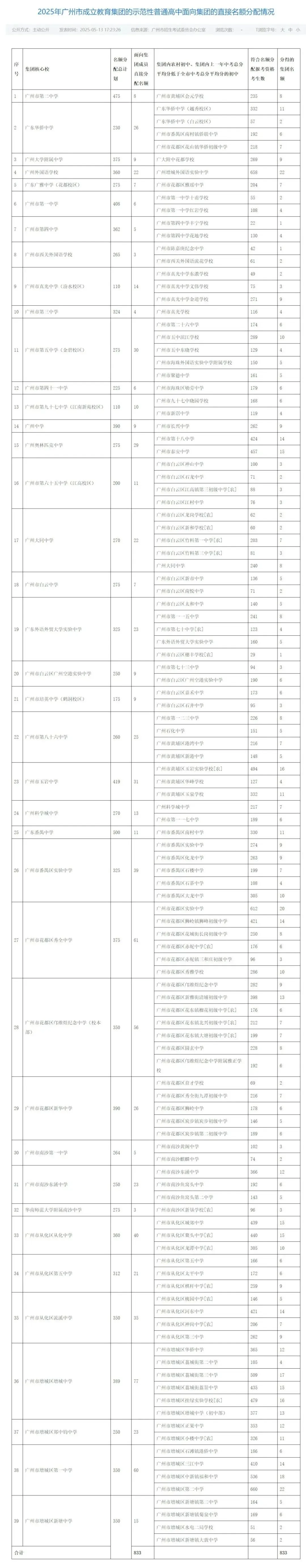 空港实验:广州空港实验中学、七十三中学、七十二中学(农)、人和第一中学;5、天河区(点击查看大图):