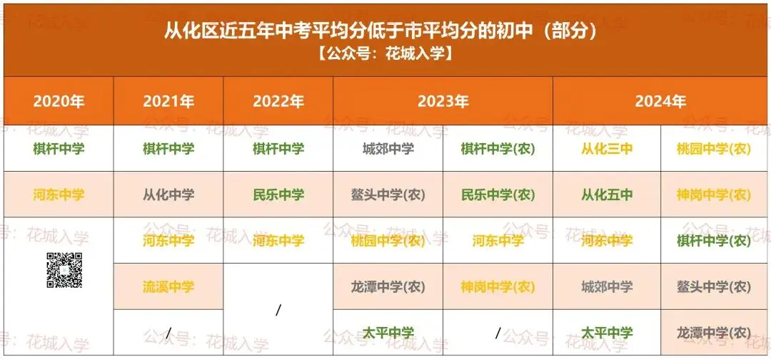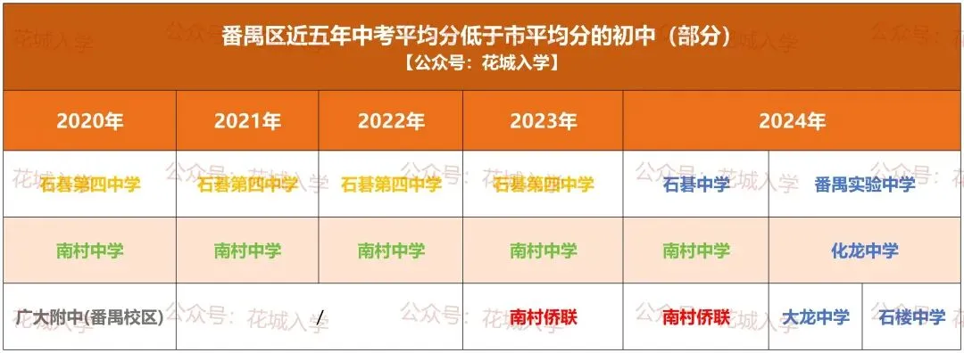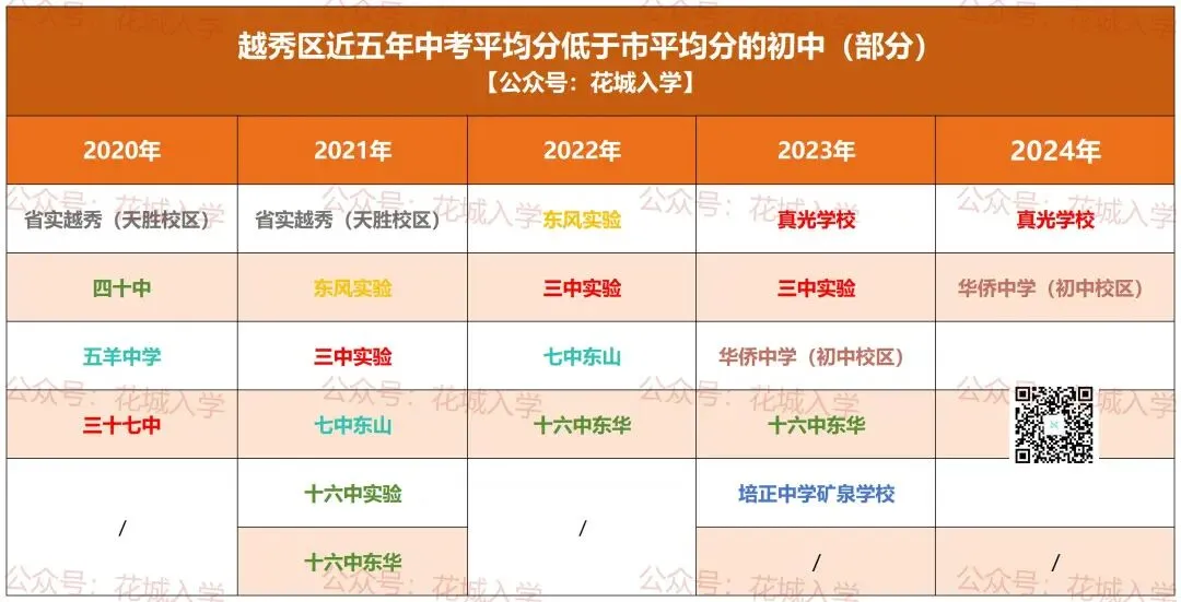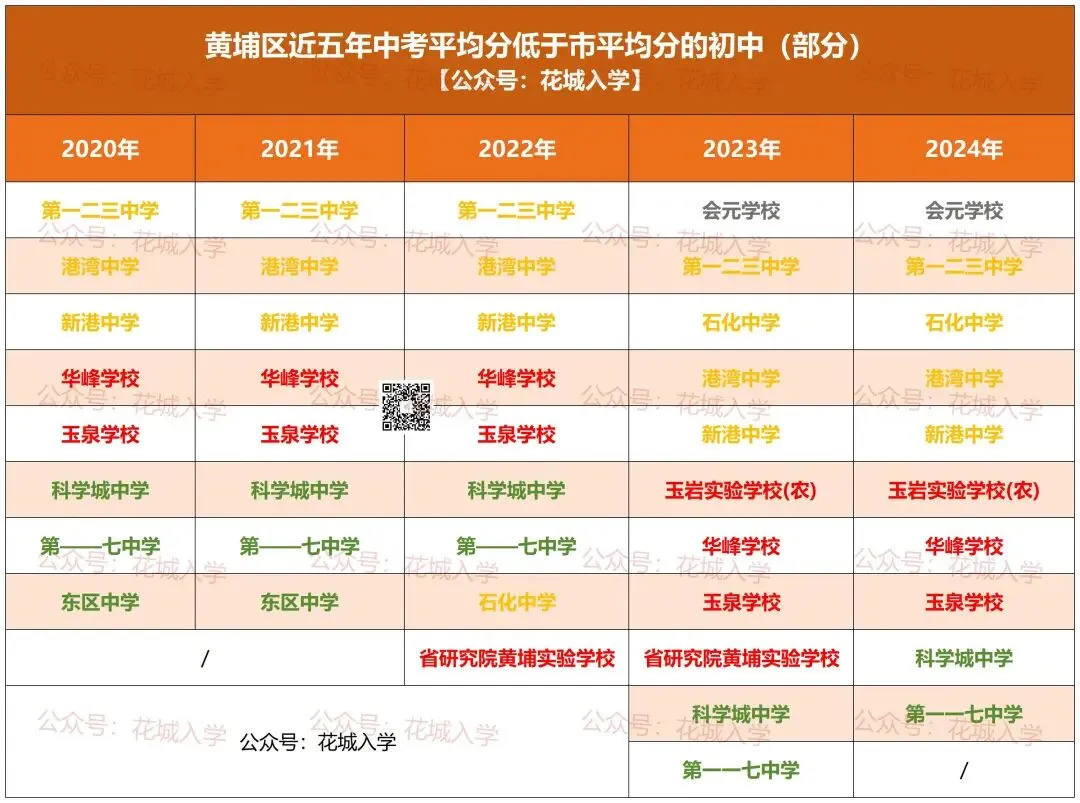 PS:没有加入集团的初中以及农村初中,不在表格统计范围内,所以没有上榜的初中,不代表成绩就高于市平均分。那近五年,中考均分低于市平均分的薄弱初中有哪些?它们属于哪些门派?各区最新名单整理如下!