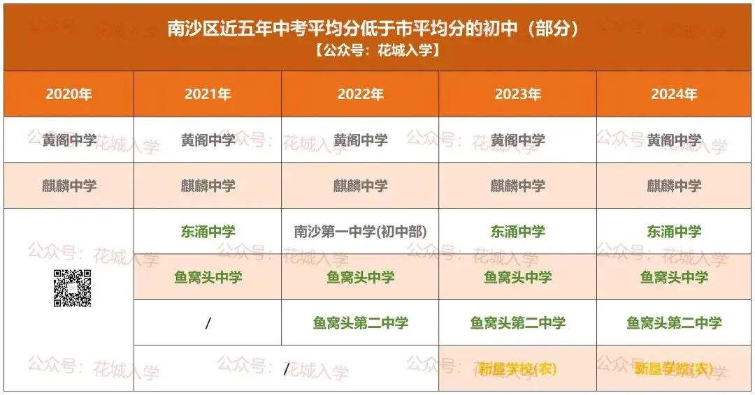 南沙华附:新垦学校(农);东涌中学:东涌中学初中部、鱼窝头中学、鱼窝头第二中学;