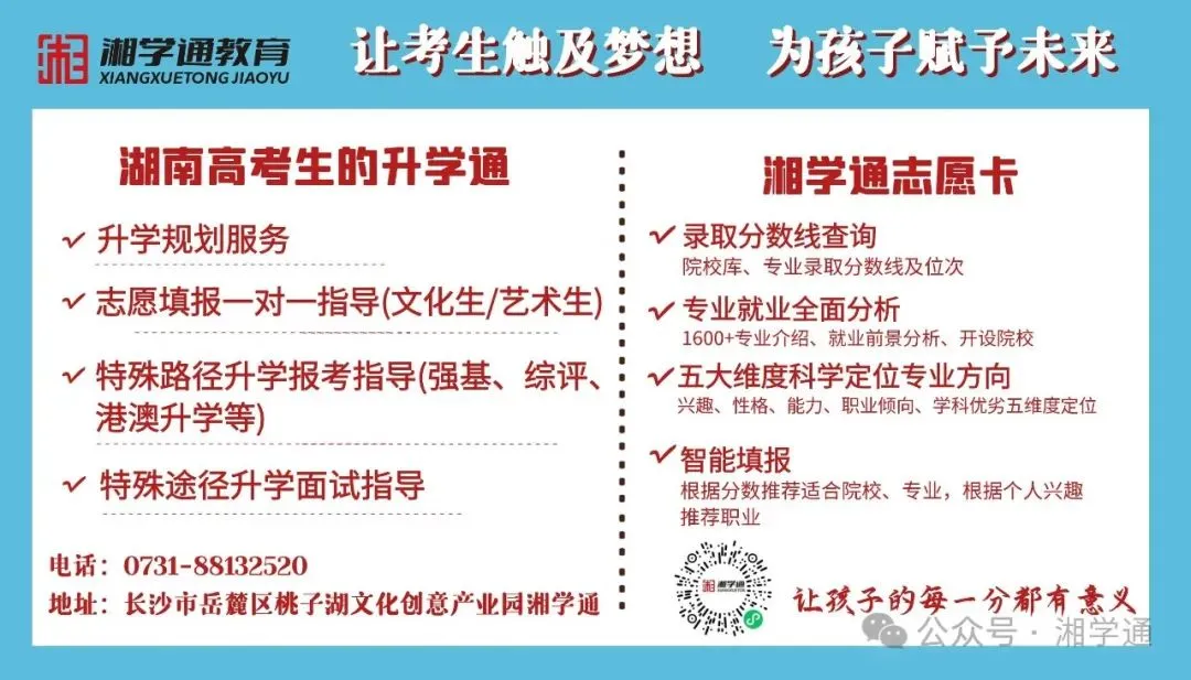 关注并选择湘学通,开启您的定制化升学规划之旅,让我们助力您在激烈的竞争中精准定位,事半功倍,直达理想彼岸!