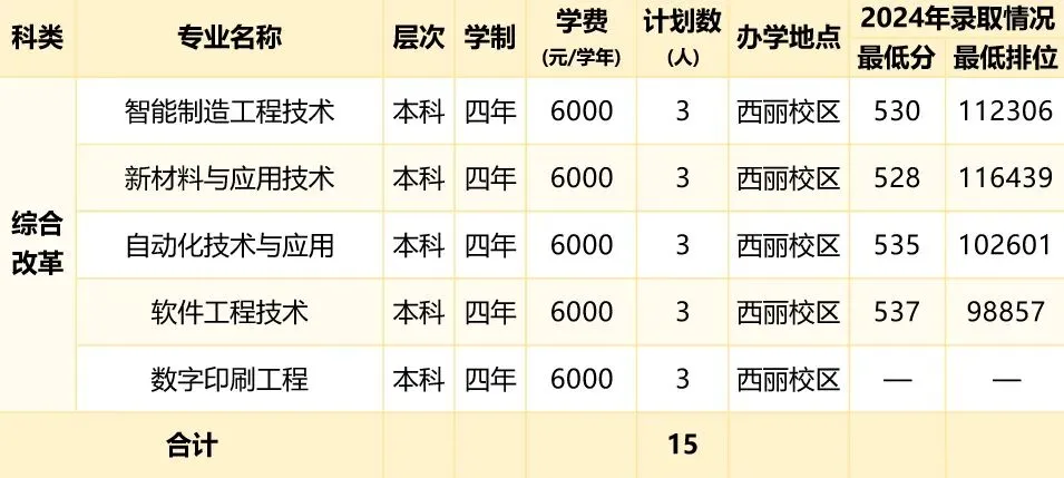学校从2023年启动本科招生以来,招生计划和招生专业逐年增加。