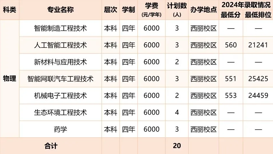 2025年夏季高考招生计划从2024年的560人增加到1170人,扩招109%;招生专业从2024年的16个增加到24个。在招生规模大幅增加的情况下,录取分数线持续上涨,物理类600分以上考生10人,最高分达617分,超特控线83分,超本科线181分。
