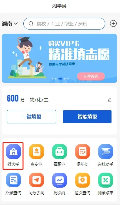 使用【湘学通】小程序查询更多院校信息