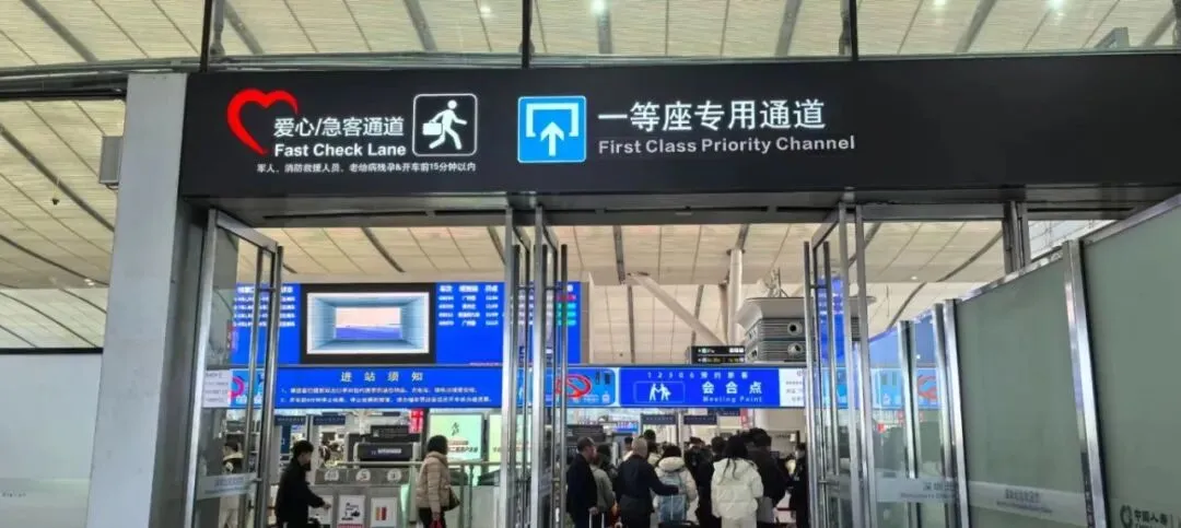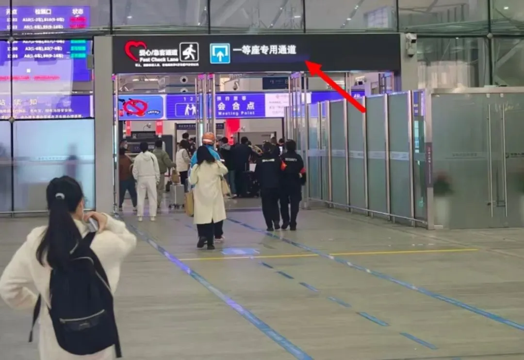 深圳北站东进站口一等座专用通道英文标识已改正。
