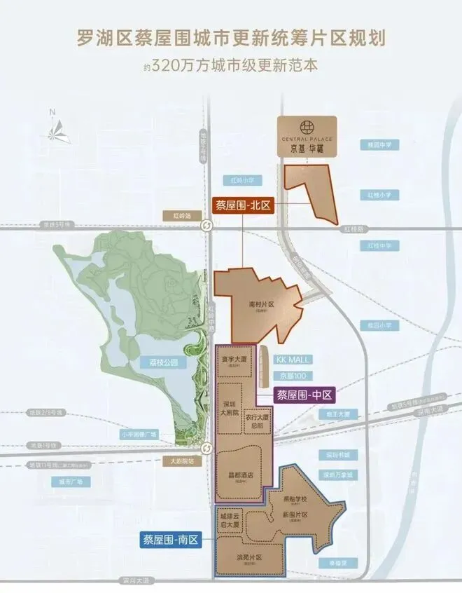 京基·华樾位于蔡屋围更新统筹片区的最北端,宝安南路与红桂路交叉口东北侧,即原清庆新村。
