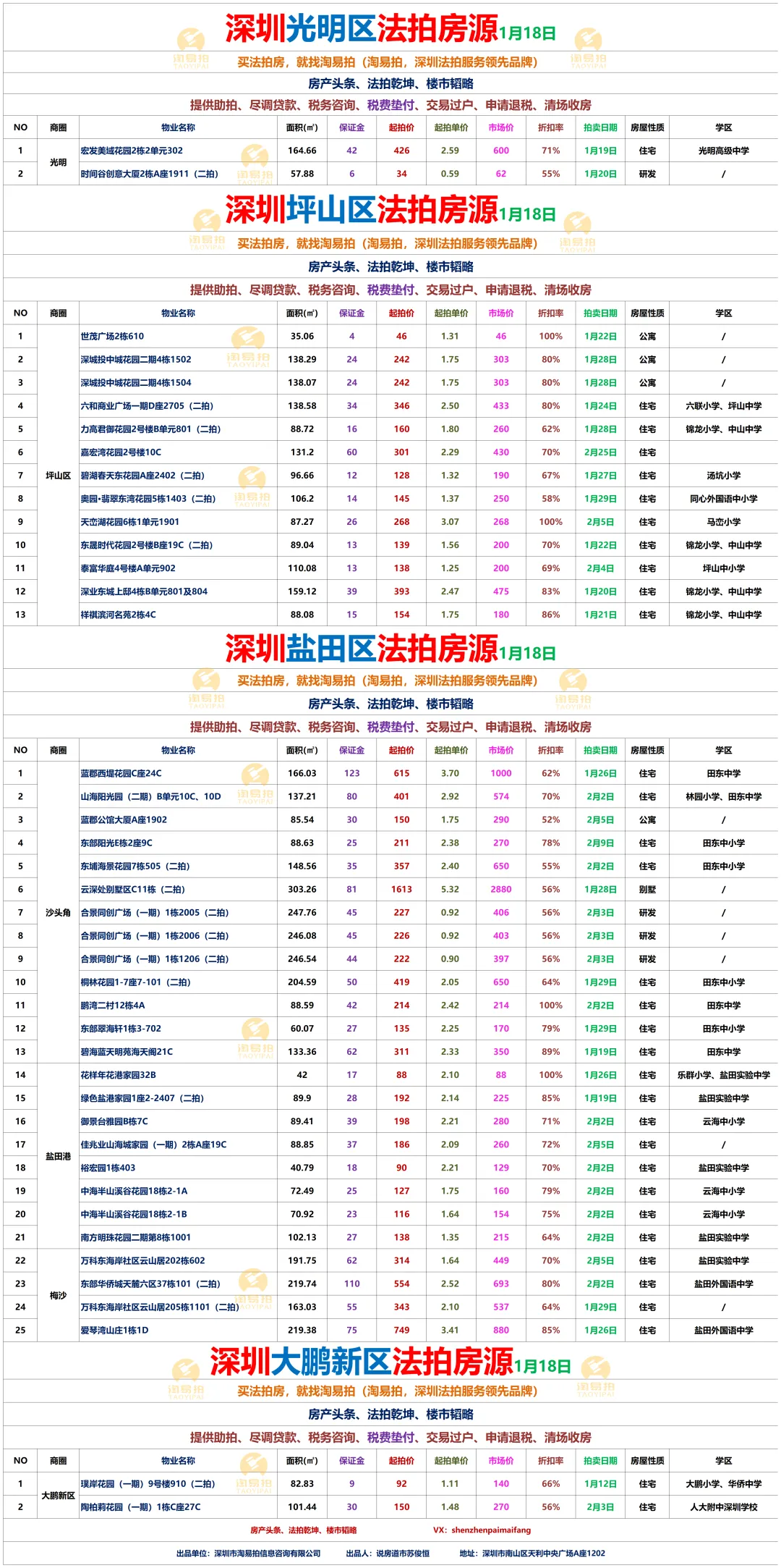 深圳市淘易拍信息咨询有限公司,是深圳早期的,也是当前深圳规模最大的拍卖房一站式服务平台。秉承“站在客户的角度为客户买房”的经营理念;恪守“诚信为本、 客户至上”的服务宗旨。