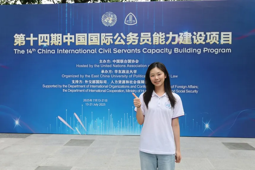 2025年7月13日至21日,2023级英语专业学生石睿妮入选“第十四期中国联合国协会国际公务员能力建设项目”,与来自北京大学、清华大学、复旦大学等140余所知名高校的300余名优秀学子共同参与学习。