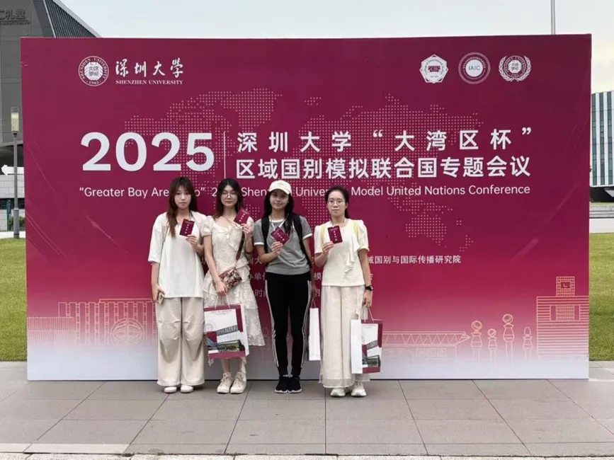 2025年7月18日至20日,国际学院2023级国贸专业刘希乐、24级国贸专业黄景博、24级会计专业饶琳和刘婧怡赴深圳大学参加“大湾区杯”区域国别模拟联合国专题会议。