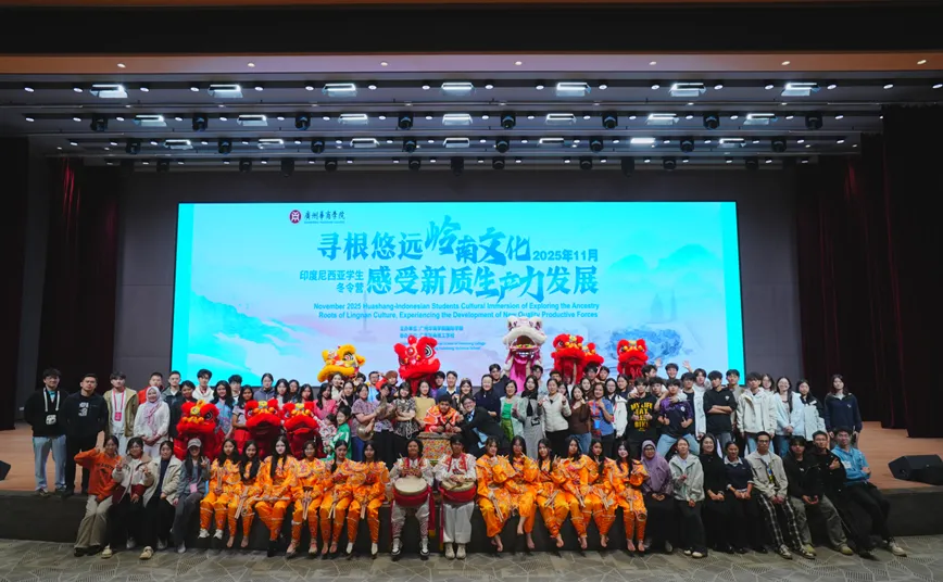2025年11月11日至20日,来自印度尼西亚茂物同一学校的40名师生来到广州华商学院,参与了为期十天的冬令营。营期中,师生们既系统学习了中国历史文化、实用汉语、魅力汉字、剪纸与书法等文化课程,也体验了英歌舞、醒狮等岭南特色舞蹈,并赴深圳、永庆坊与广东科学中心等地参访,亲身体验低空经济等科技前沿为生活带来的改变,感受岭南深厚的历史文脉,以及政府对青少年科普教育的高度重视。