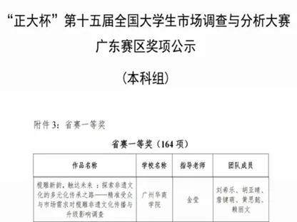 第十五届“正大杯”全国大学生市场调查与分析大赛省赛一等奖