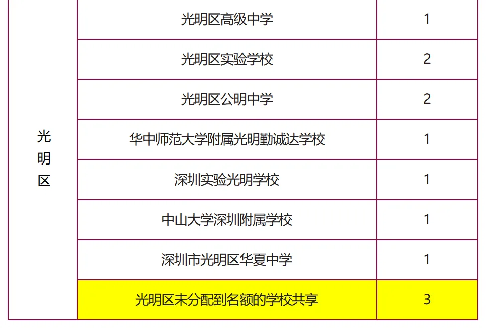 ●名额分配:深圳所有公办高中,50%招生计划按比例分配至全市各初中。