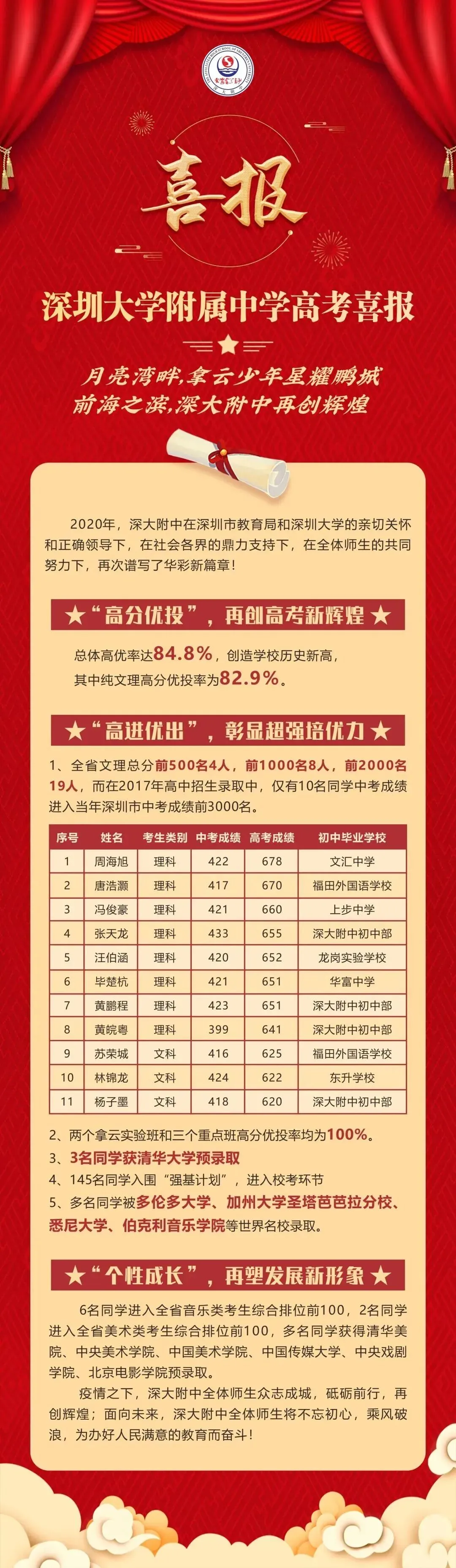 对于既想打好文化基础,又不愿放弃艺术深造的学生来说,深大附中是个值得考虑的平台。