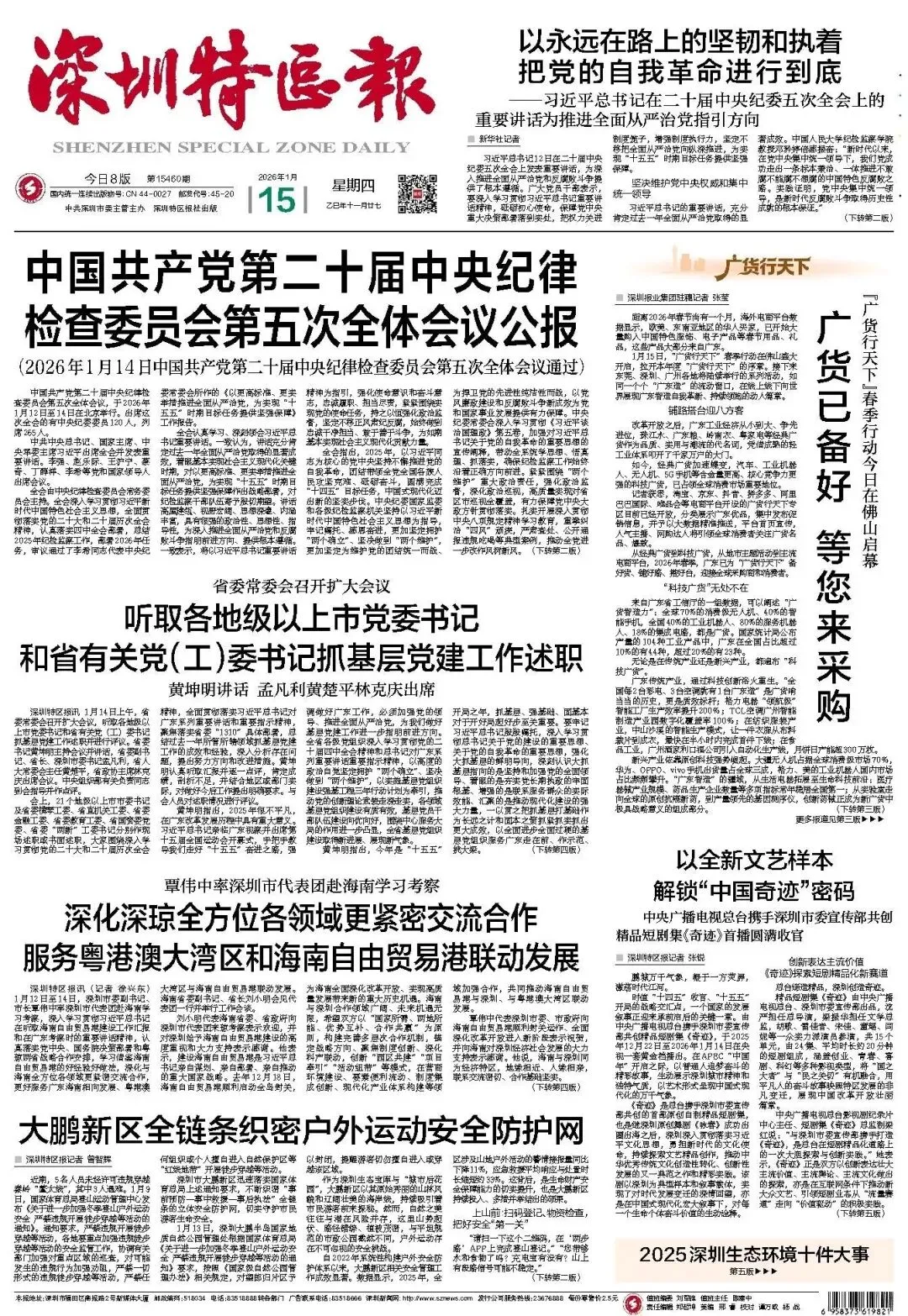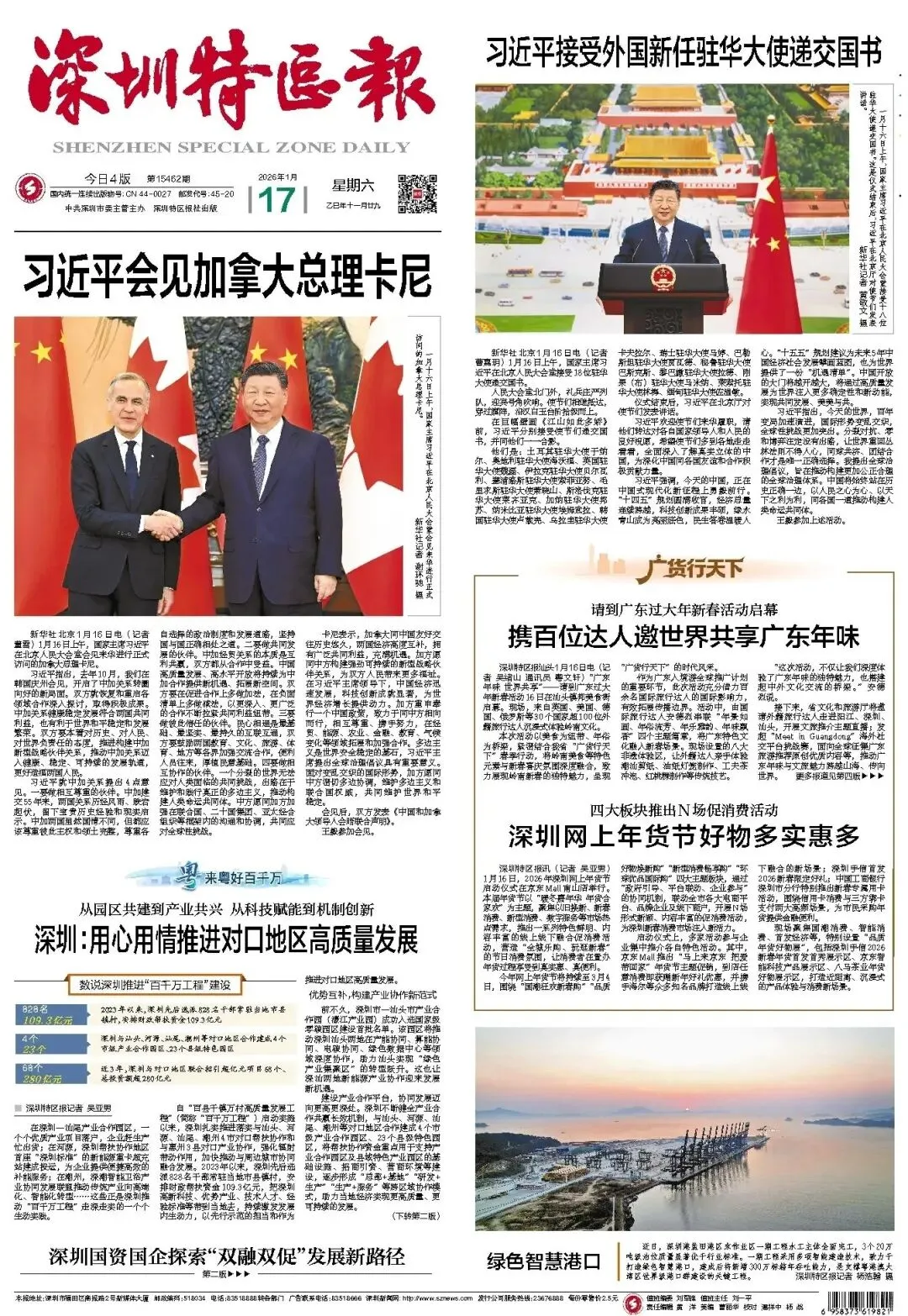● 1月16日,2026年深圳网上年货节启动仪式在京东Mall南山店举行。本届年货节以“暖冬嘉年华 年货合家欢”为主题,聚焦以旧换新、新春消费、新型消费、数字服务等市场热点需求,推出一系列特色鲜明、内容丰富的线上线下融合促消费活动,营造“全城乐购、玩逛新春”的节日消费氛围,让消费者在置办年货过程享受到真实惠、真便利。详情>>>