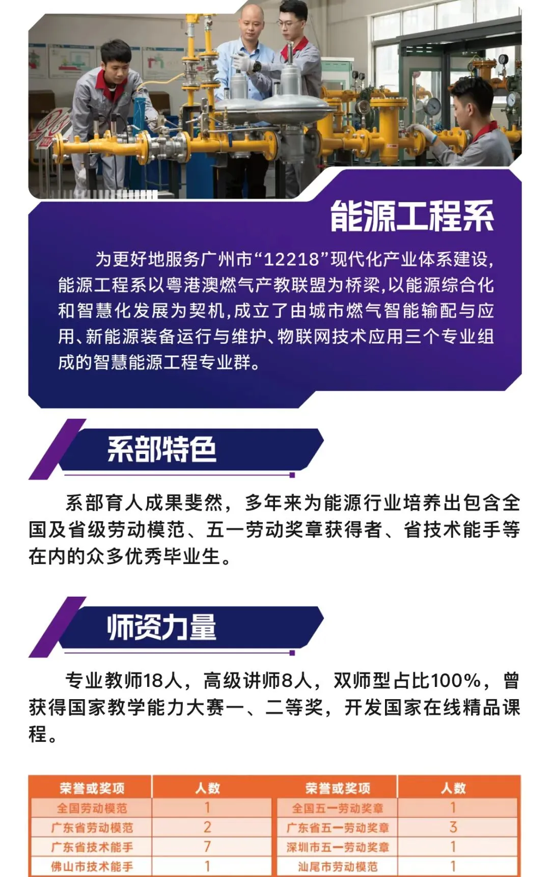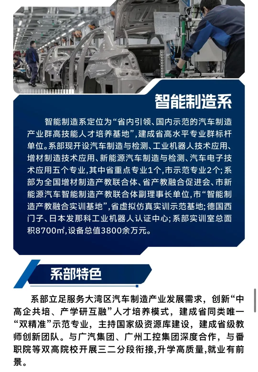 学校积极通过国家职业教育“一体两翼”建设,促进校企优势互补和产教深度融合,形成产教良性互动,推动人才培养体系和教学资源对接,助力产教供需对接机制不断完善;主导成立广东汽车改装产教联盟、粤港澳燃气产教联盟,搭建起由行业、企业与教育机构共同参与的合作平台,共同建立标准、共享资源、联合培养人才,并积极投身以湾区产业园区为依托的市域产教融合联合体和行业产教融合共同体建设,参与市域产教联合体4个,行业产教融合共同体11个。