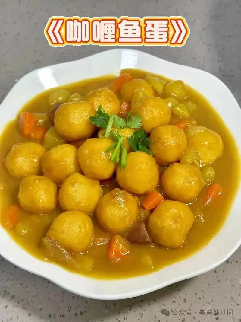 咖喱土豆鱼蛋、肉丝炒豆芽、老鸭冬瓜薏米汤、双色米饭