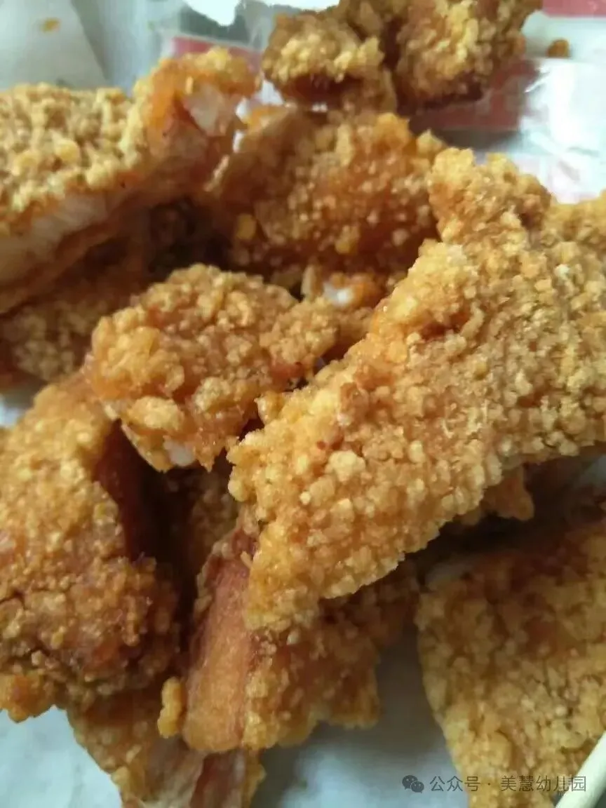 小酥肉、肉沫三丁(土豆、红萝卜、青瓜)、龙骨花生莲藕汤、香软米饭