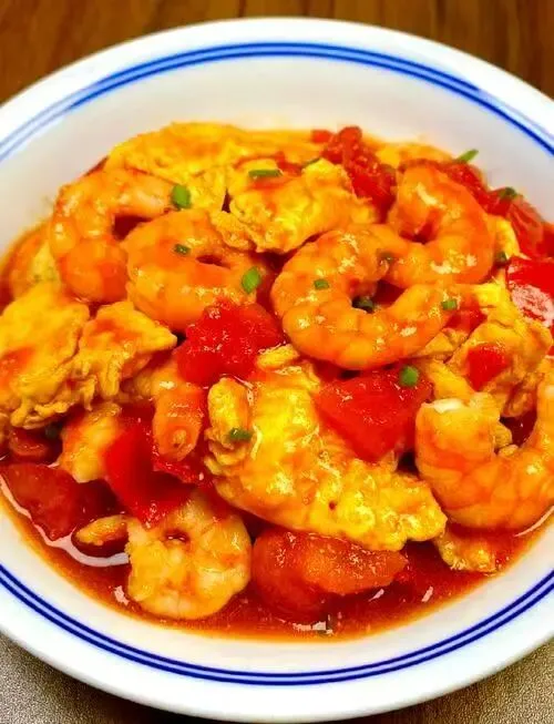 番茄虾仁滑蛋、肉丝炒芥兰头、虫草花鸡汤、双色米饭