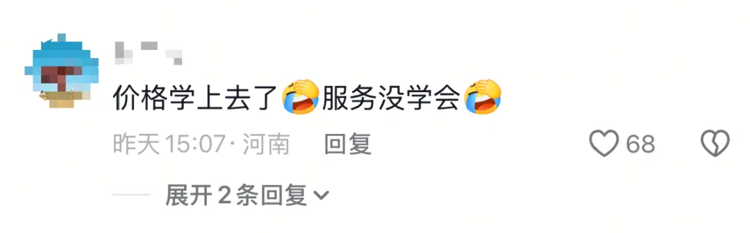 "价格学上去了,服务没学上
