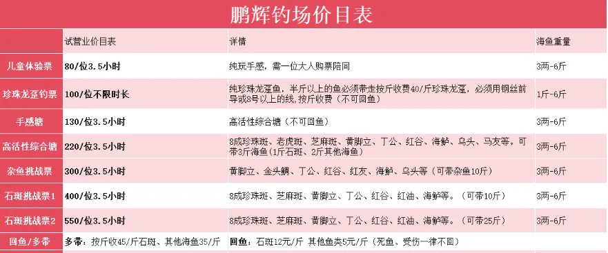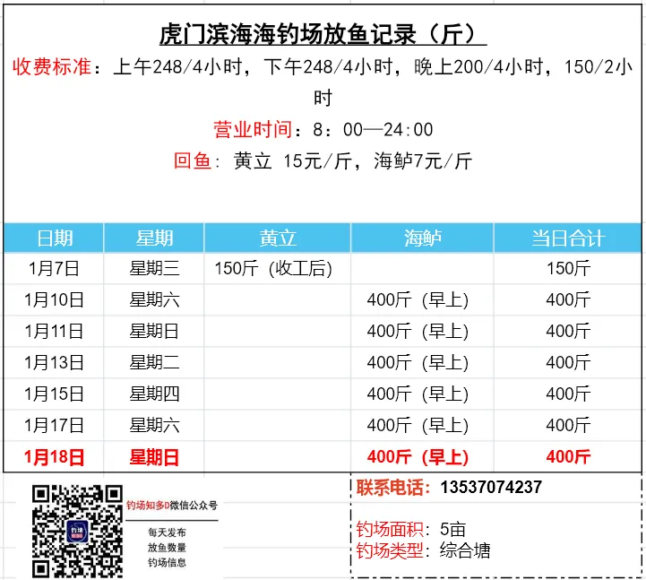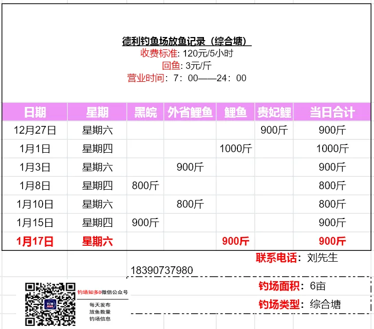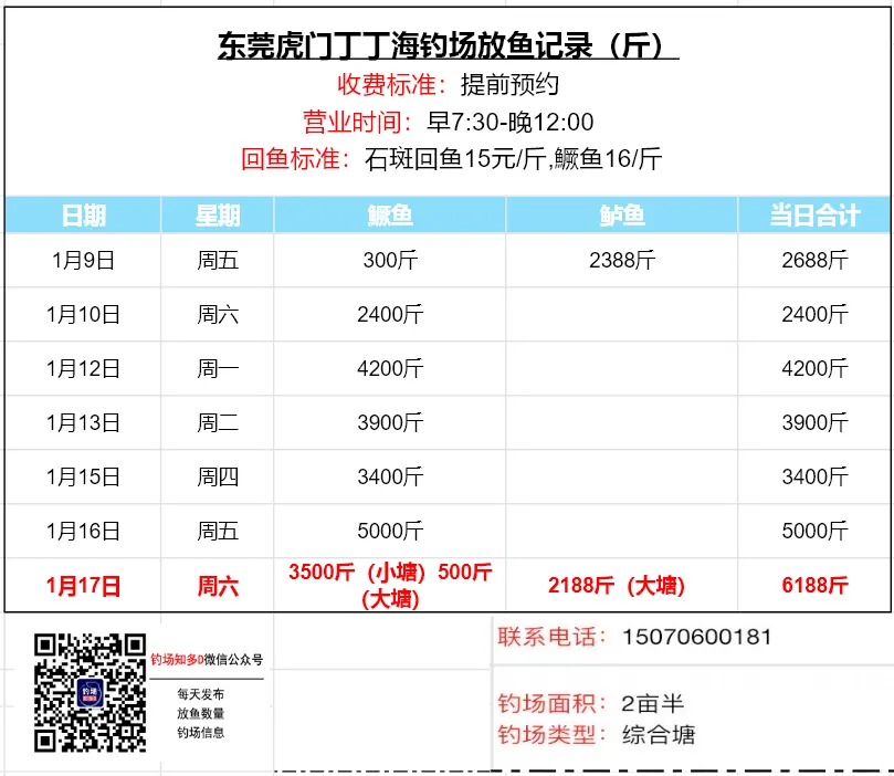 数据来源于钓场老板,未经现场核实!