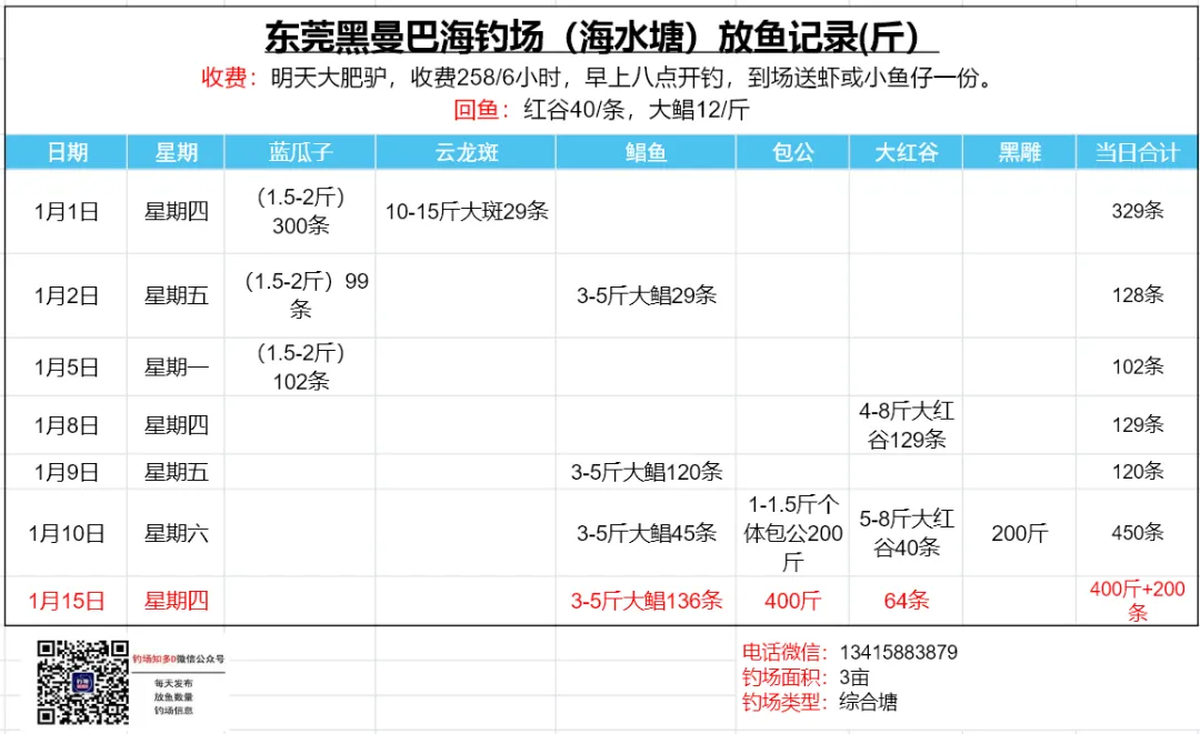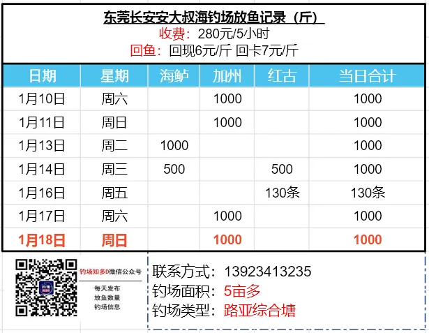 本文收录东莞地区比较知名和靠谱的钓场放鱼数据