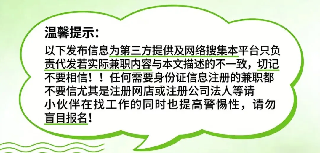 1、为维护健康有序的招聘环境,一经发现不实招聘信息,敬请及时反馈。