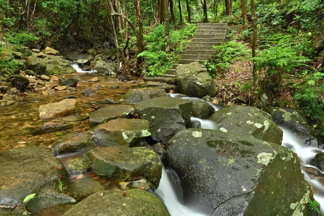 - 新手友好线 —— 梧桐山北路:全程 7.8 公里,约 3 小时。路线都是石板路缓坡,适合带老人小孩一同登山,沿途还有自动贩卖机可供补给。