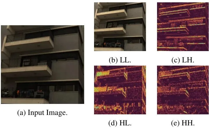 图2:离散小波变换(DWT)将一幅图像分解为一个低频近似子带(LL,包含主要轮廓)和三个方向的高频细节子带(LH, HL, HH,包含边缘纹理)。这就像把一幅画分解成了“轮廓草图”和“细节笔触”。
