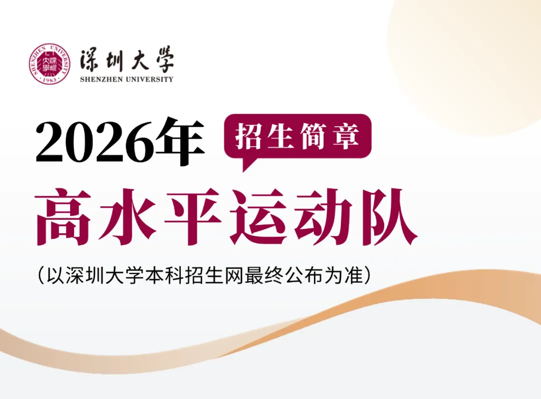 深圳大学是教育部批准的具有招收高水平运动队资格的高校之一。为选拔培养德、智、体全面发展的高水平学生运动员,推动学校体育运动的开展,2026年我校继续面向全国(不含港澳台地区)招收高水平运动队。现根据教育部办公厅关于普通高等学校部分特殊类型招生工作的相关文件精神,制定本简章。