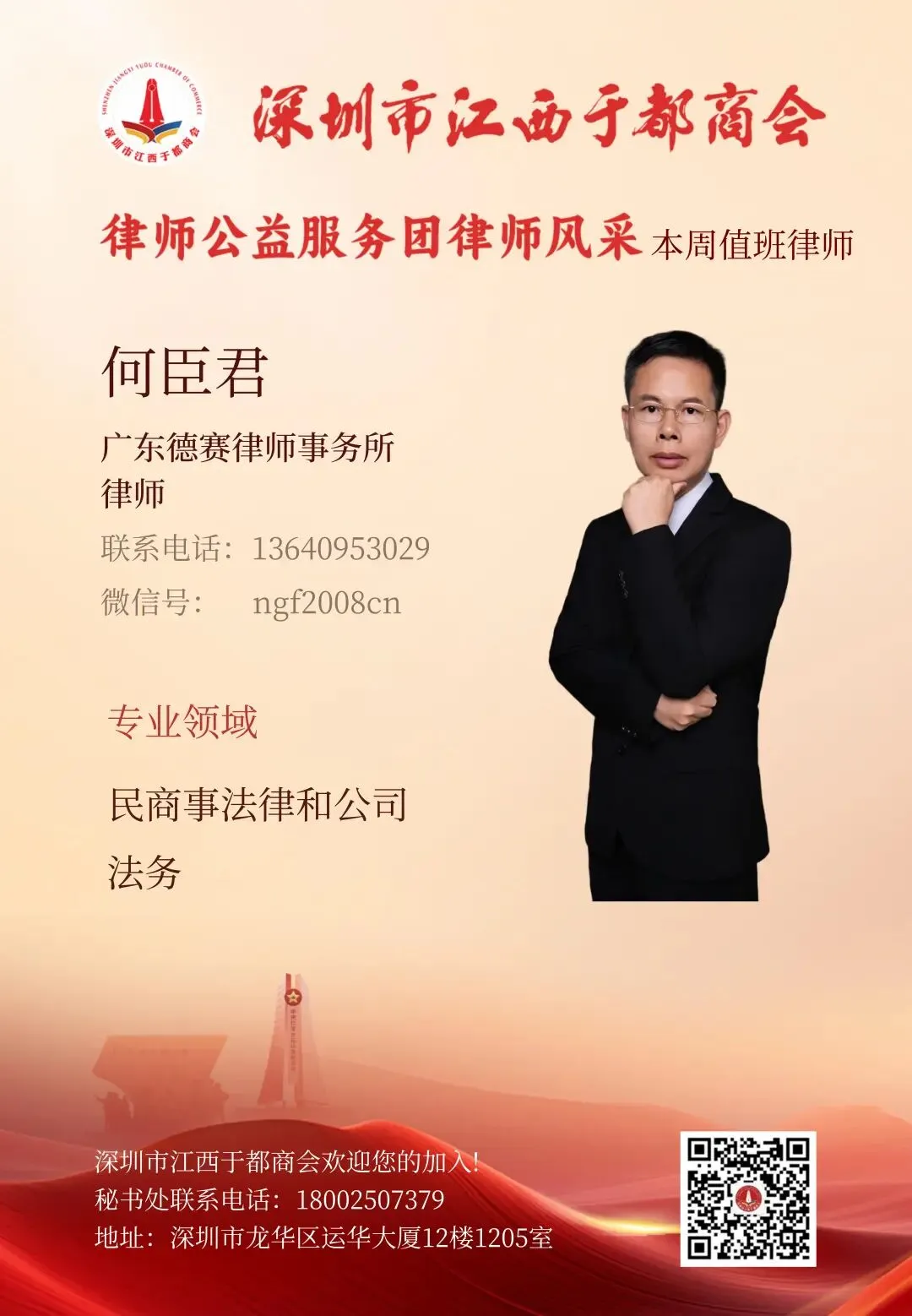>商会公告 | 深圳市江西于都商会律师公益服务团1月21日值班律师预告