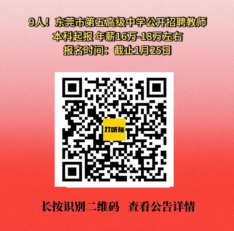 >【东莞教师招聘】9人!年薪16万-18万左右!东莞市第五高级中学公开招聘教师!