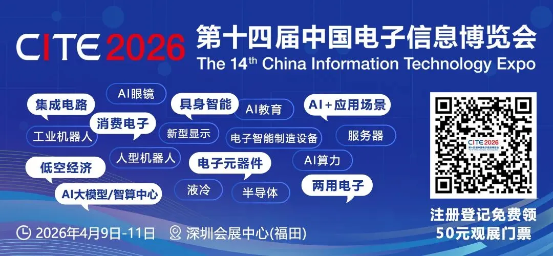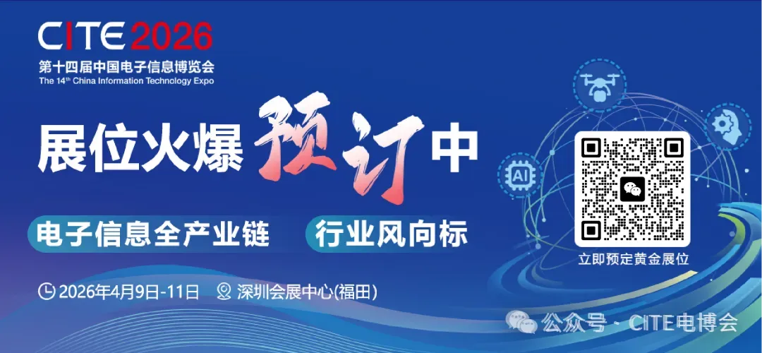 基于此背景,第十四届中国电子信息博览会(CITE 2026) 将于 2026年4月9日至11日 在 深圳会展中心(福田) 盛大启幕。CITE2026以“新技术 新产品 新场景”为主题,围绕消费电子、具身智能、集成电路、电子元器件、AI+应用场景、AI大模型/智算中心、低空经济、特种电子与两用电子等前沿领域进行展示,将汇聚超1000家全球领先企业,超6万名海内外专业观众。