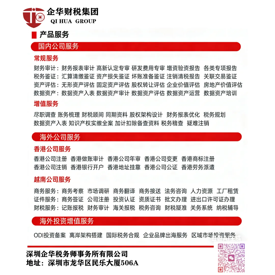最后提醒:2026年企业所得税汇算清缴截止日期为5月31日,深圳企业需提前布局,避开申报高峰,若遇到政策解读、实操难题,可随时联系深圳企华税务师事务所有限公司,获取一对一专业指导。